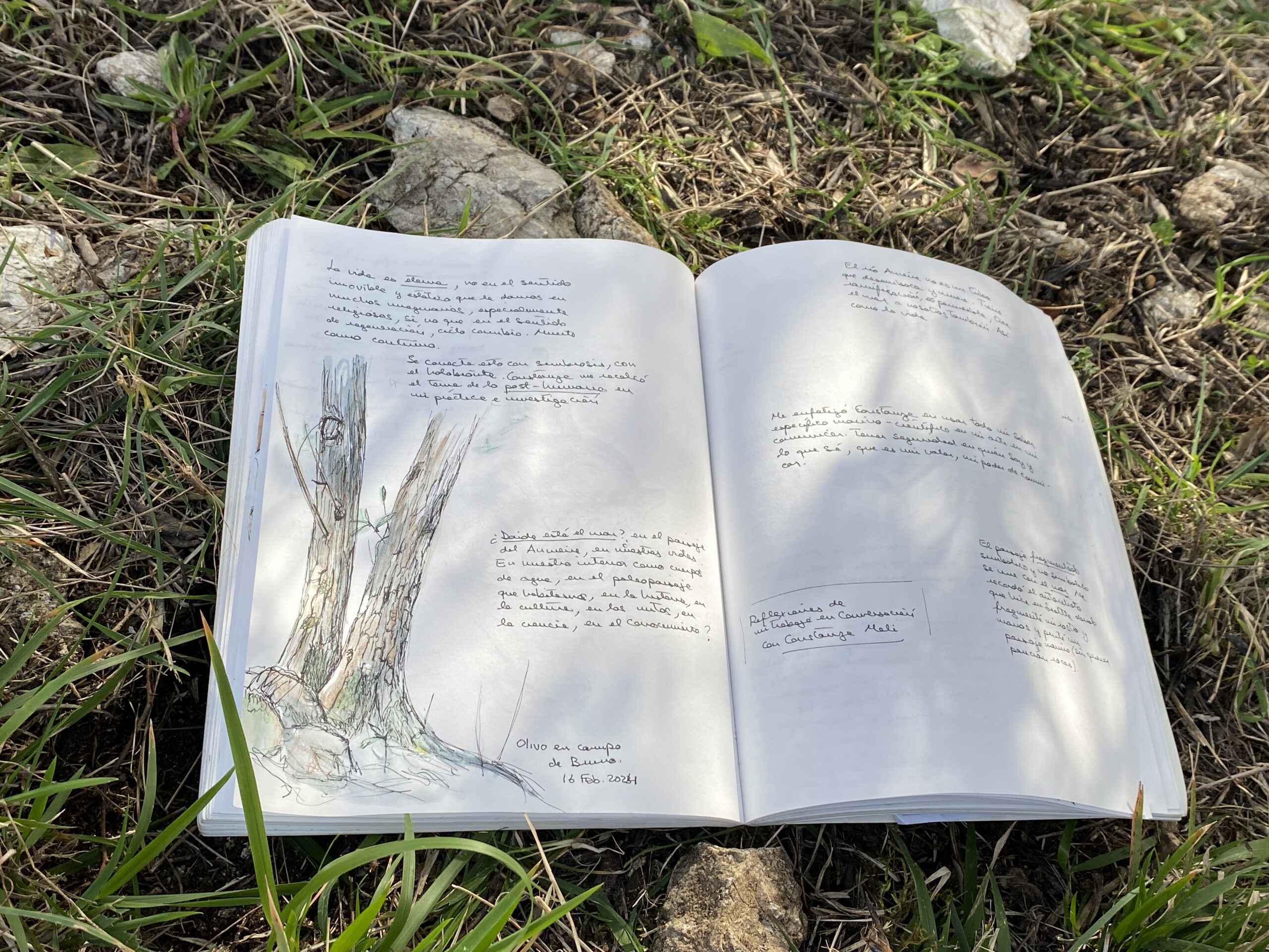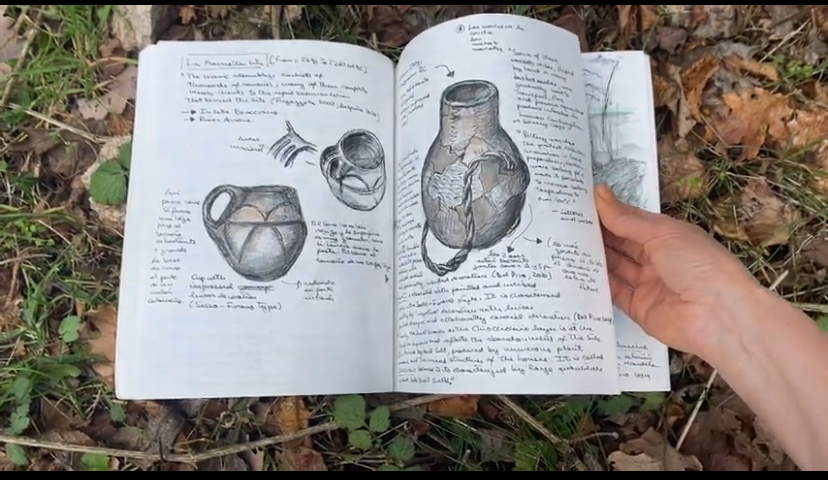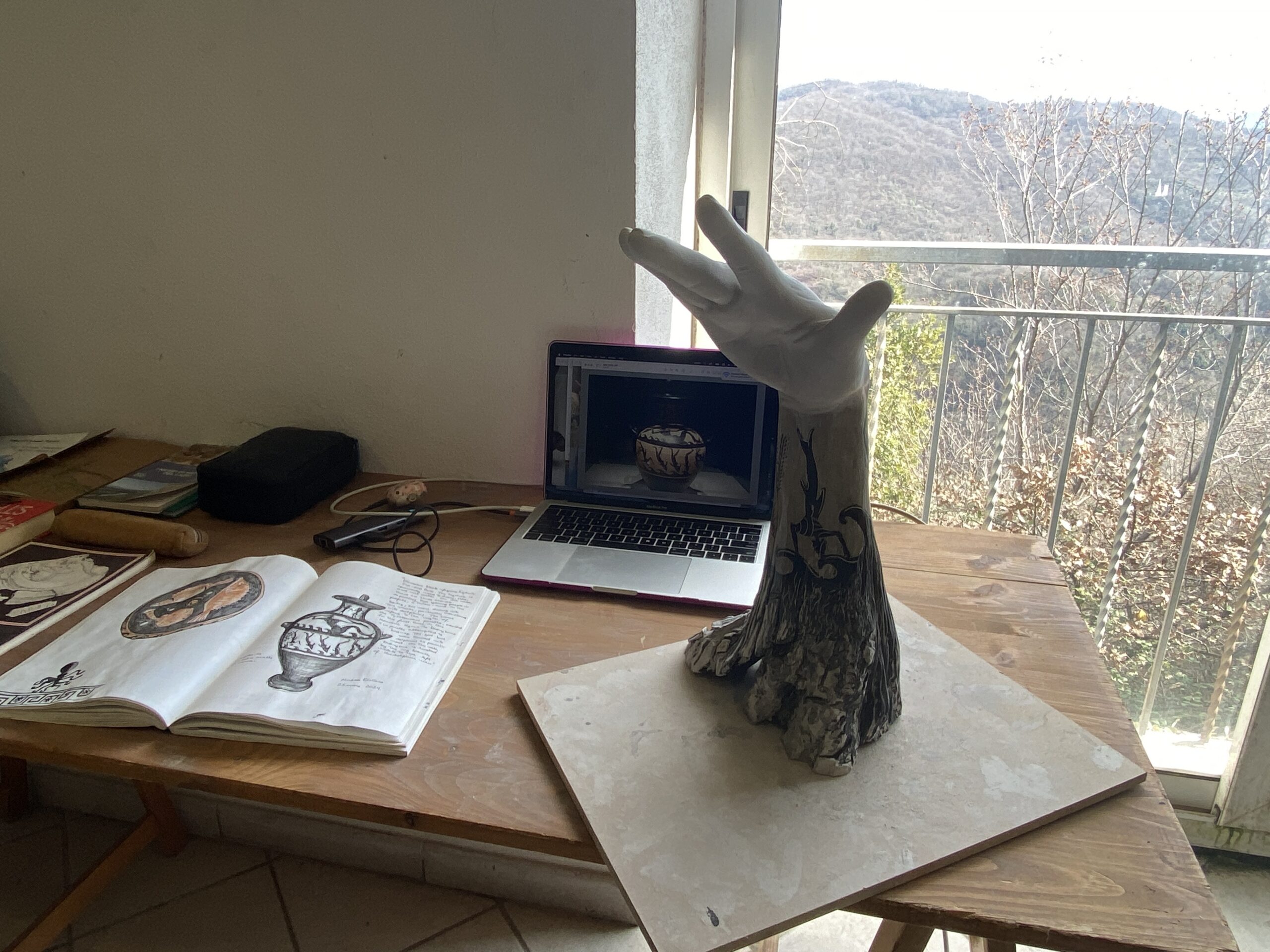 From this same ground, I developed two artistic actions with clay, documented audiovisually. These gestures move through ideas of embodied knowledge and through the long memory of cardial ceramics. They are shaped by the calcium carbonate held in the clay, traces of shells from the ancient marine paleolandscape that once covered this valley. In their making, they also touch the surrounding olive groves and the quiet persistence of the human gesture passing through the landscape.